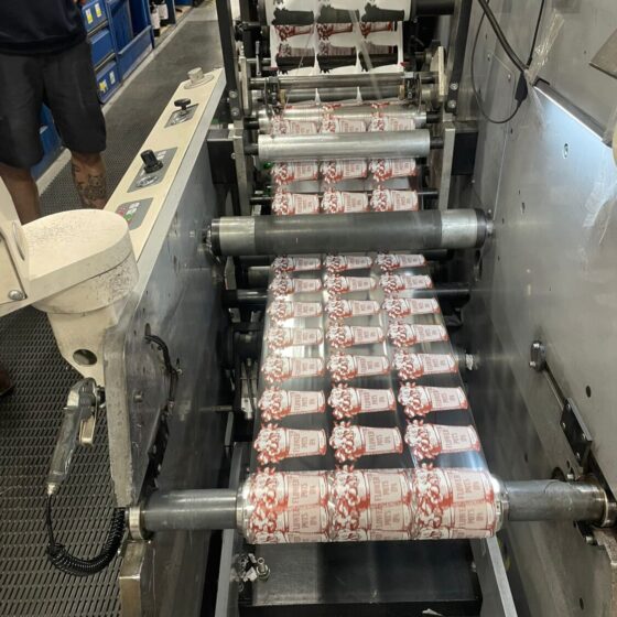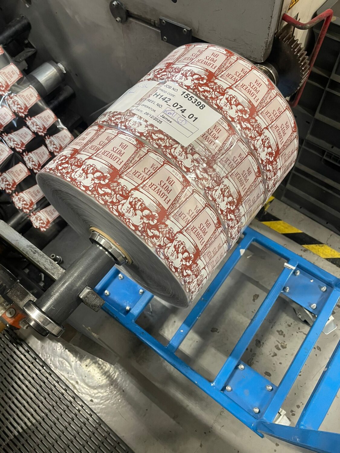 We recently spent a very enjoyable morning up in Coalville, Leicestershire, witnessing the first run of our bottle labels from our new supplier Hamilton Schades Limited. With the same textured finish and a slightly more precise print the new stock are now in use. It took a while to produce 240,000 front, back and neck and eight different colours!